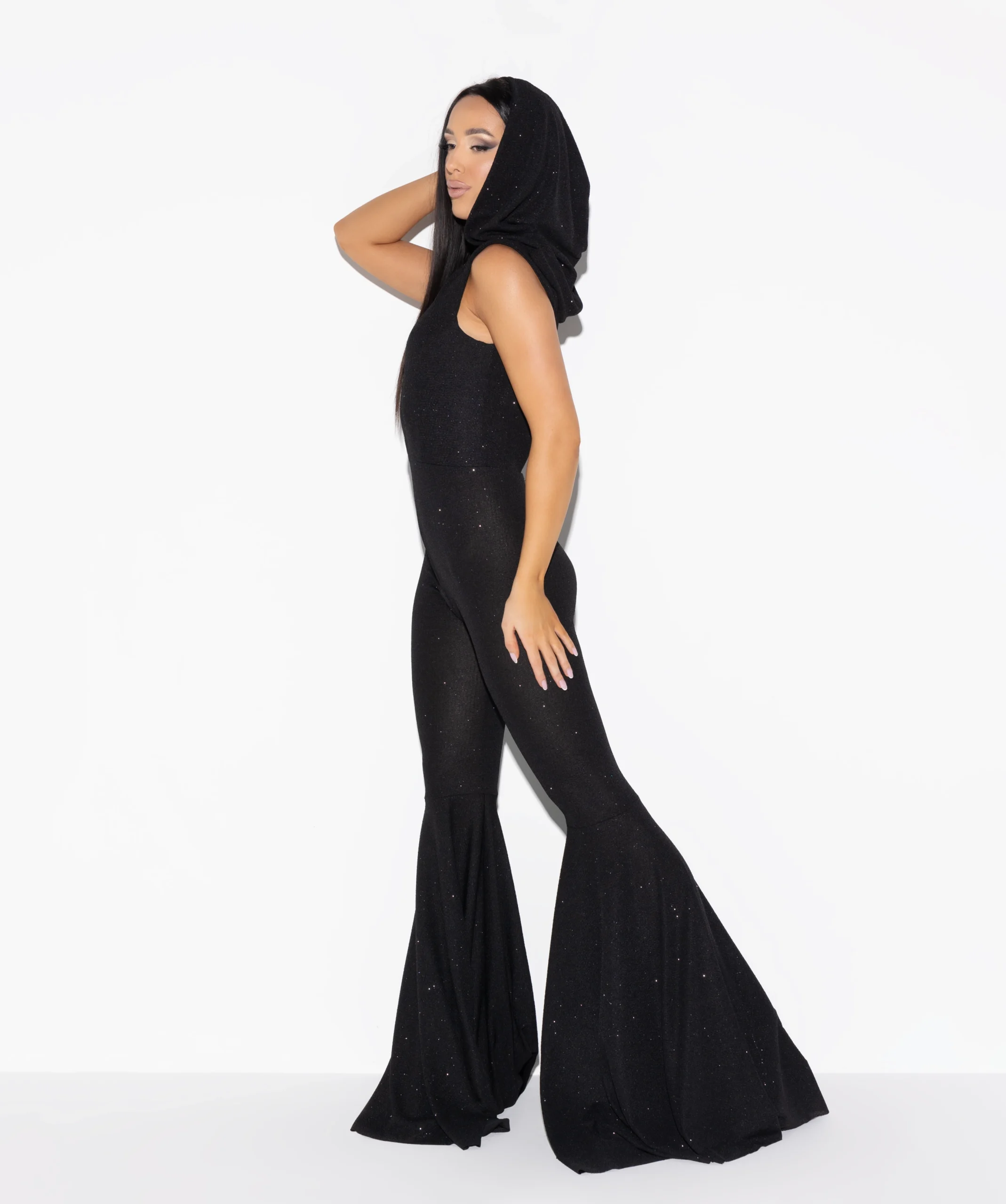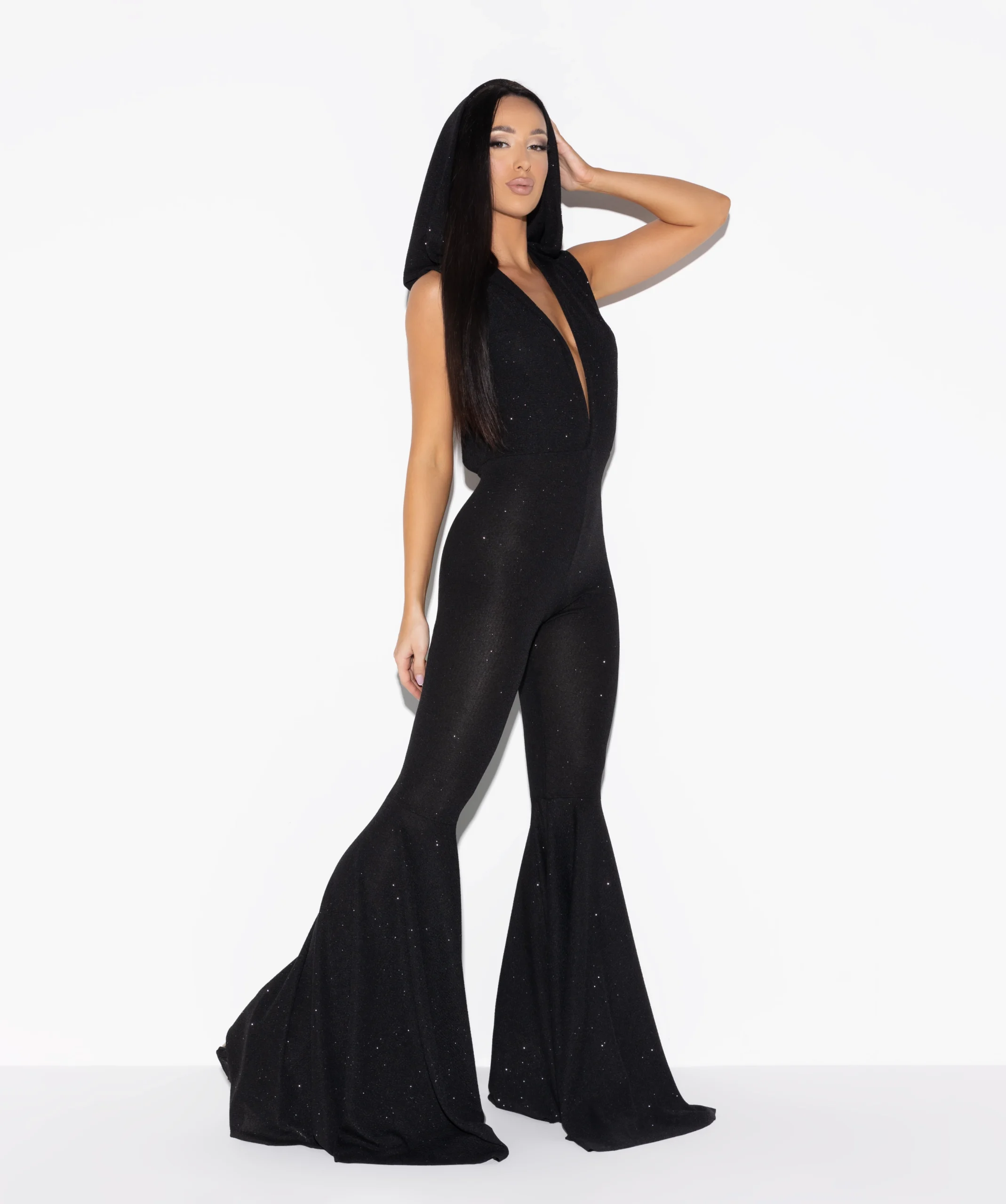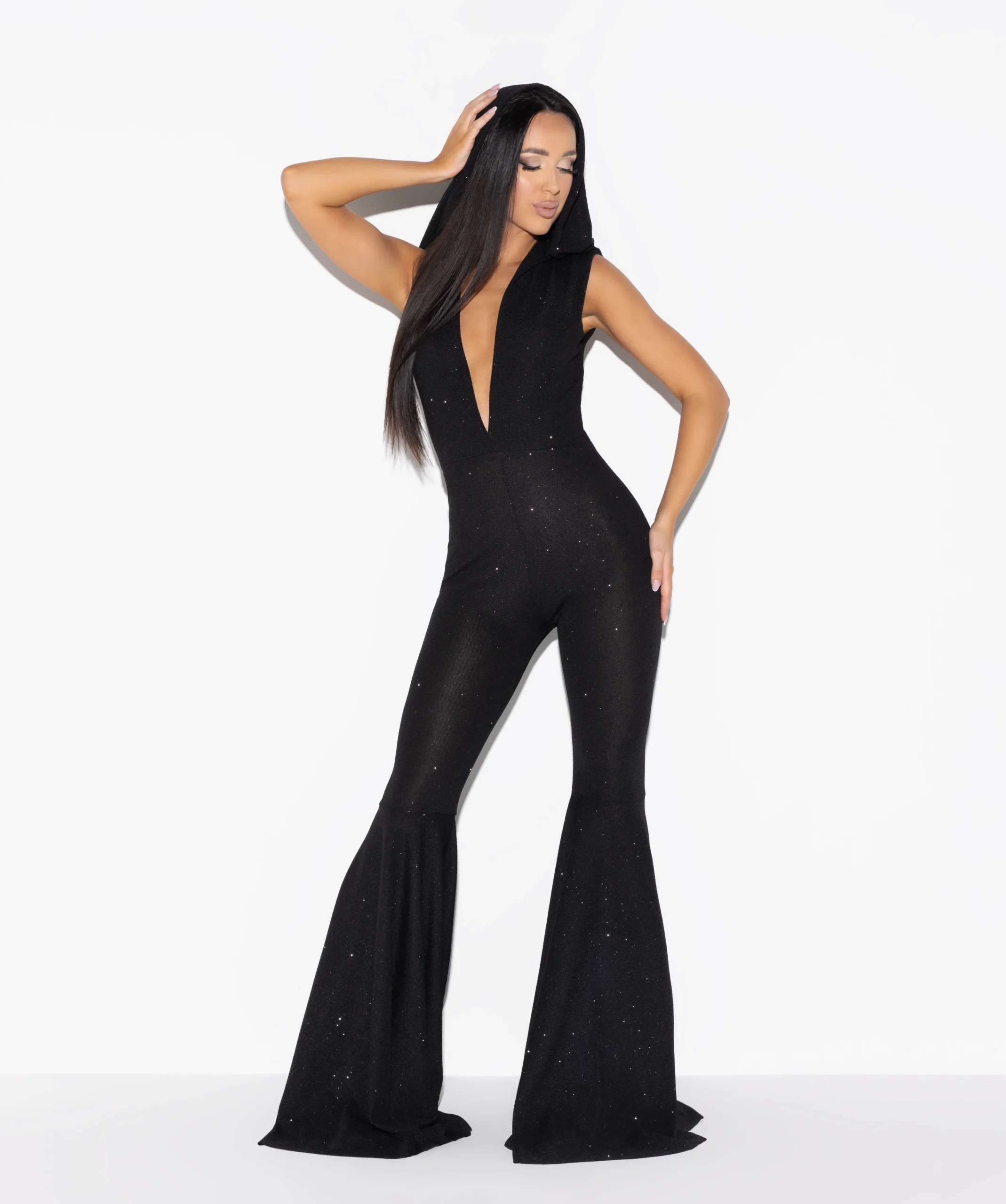 Šljokičavi kombinezon sa kapuljačom otvorenih leđa, dugih nogavica i prilagođenog kroja. Dovoljno je zatvoren, a i dovoljno otvoren pozadi da istakne leđa i istovremeno naglasi siluetu. Duge nogavice se prilagođavaju visini klijenta i vizuelno izdužuju noge. Gde god da kročite, u ovom kombinezonu će sve oči biti uprte u vas. Urban must have komad ove sezone!