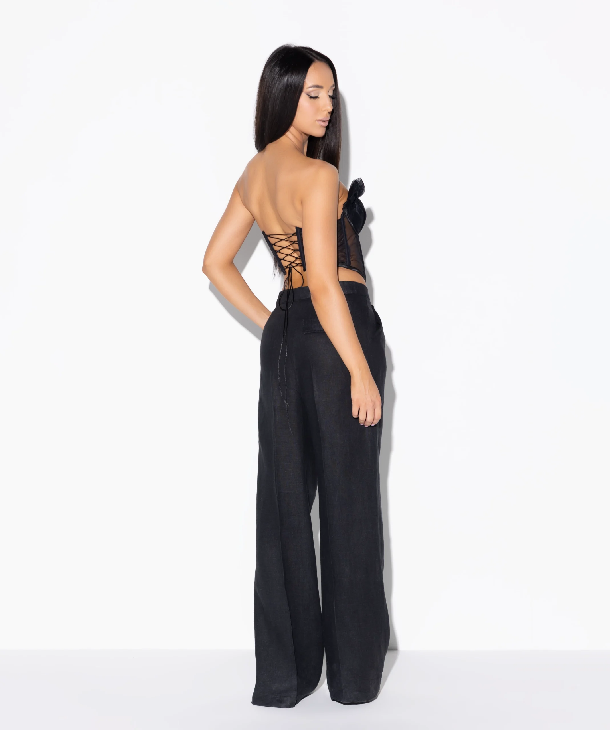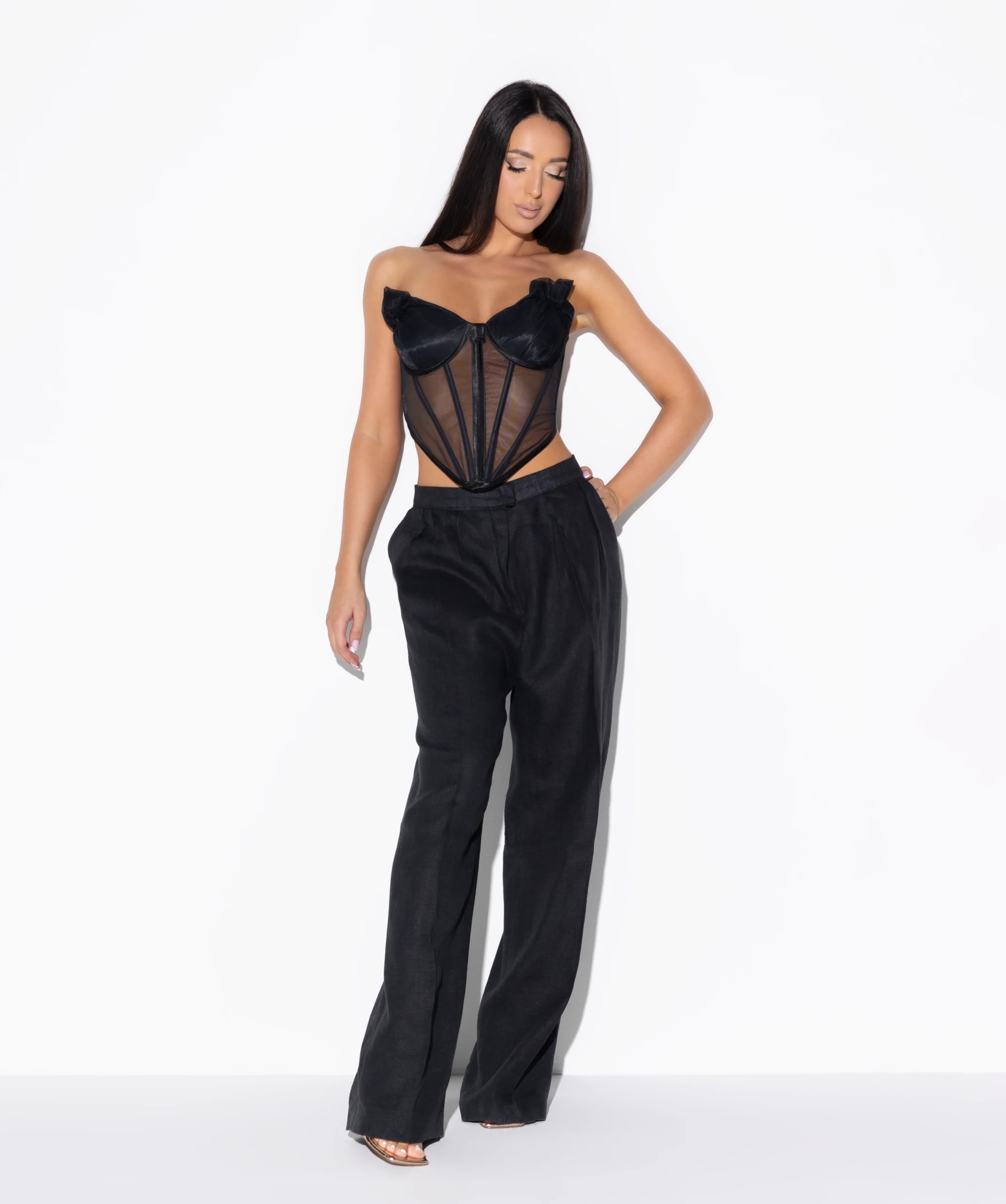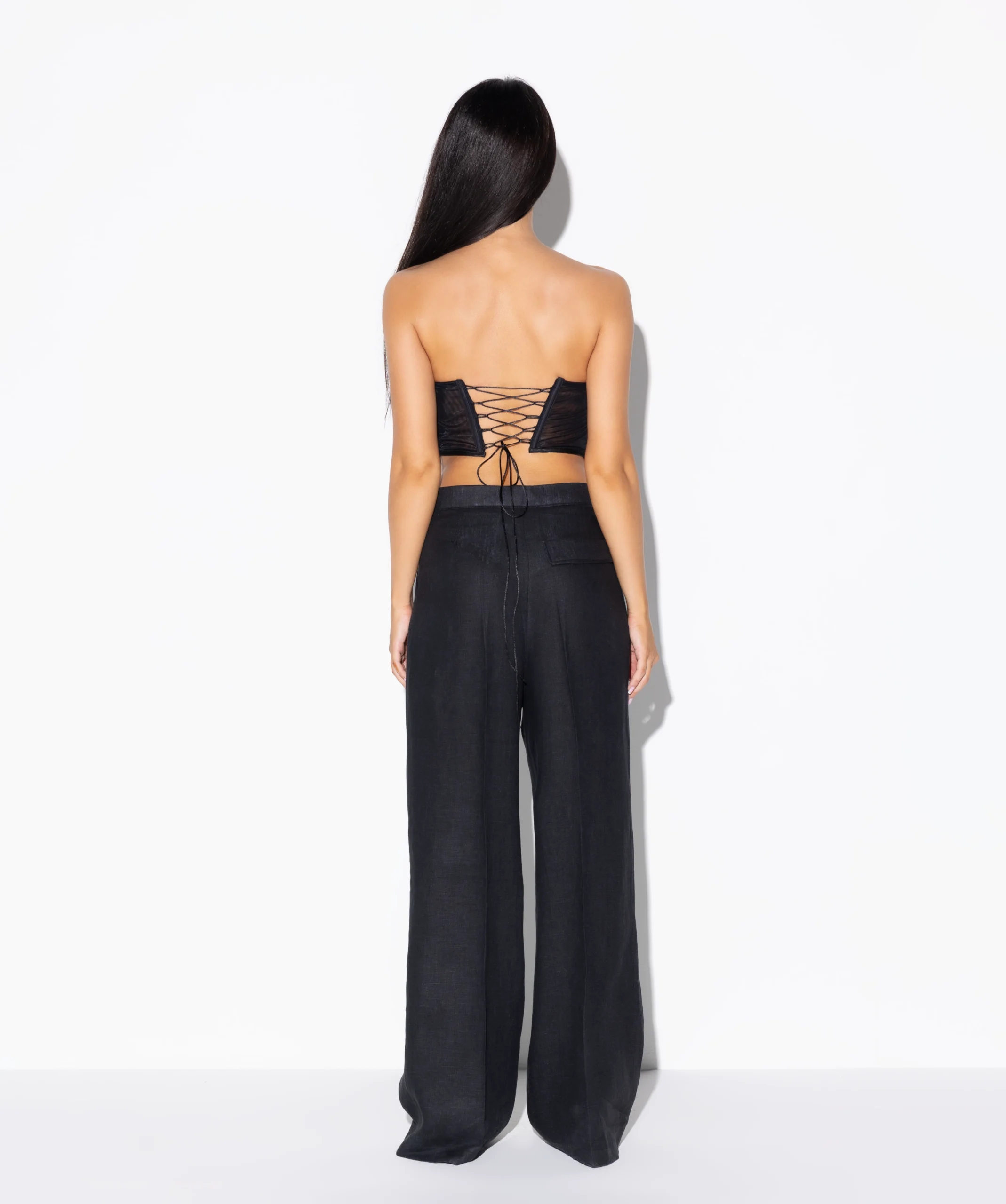 Korset sa sharp-edge linijama i unikatnim krojem, stvara upečatljiv urbani komad koji naglašava liniju tela i dodaje dozu odvažnosti svakom outfit-u. Koset se pertla pozadi.
