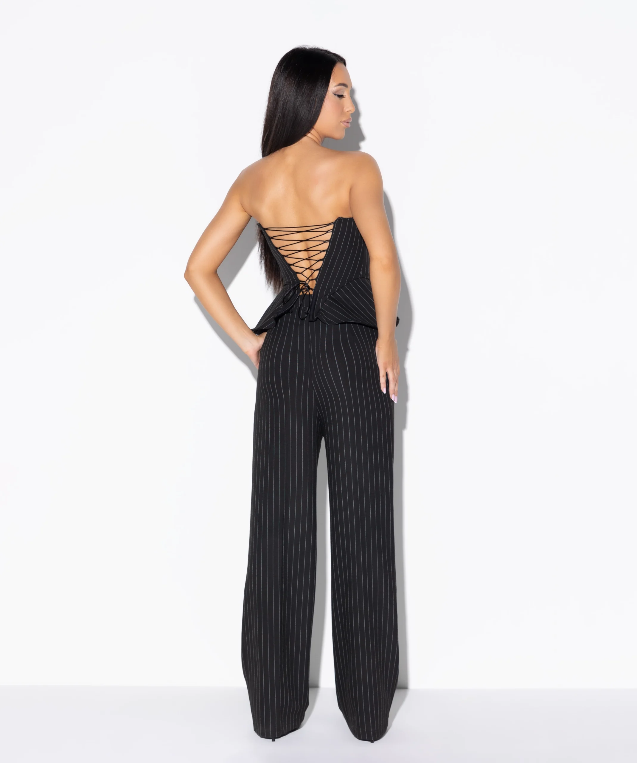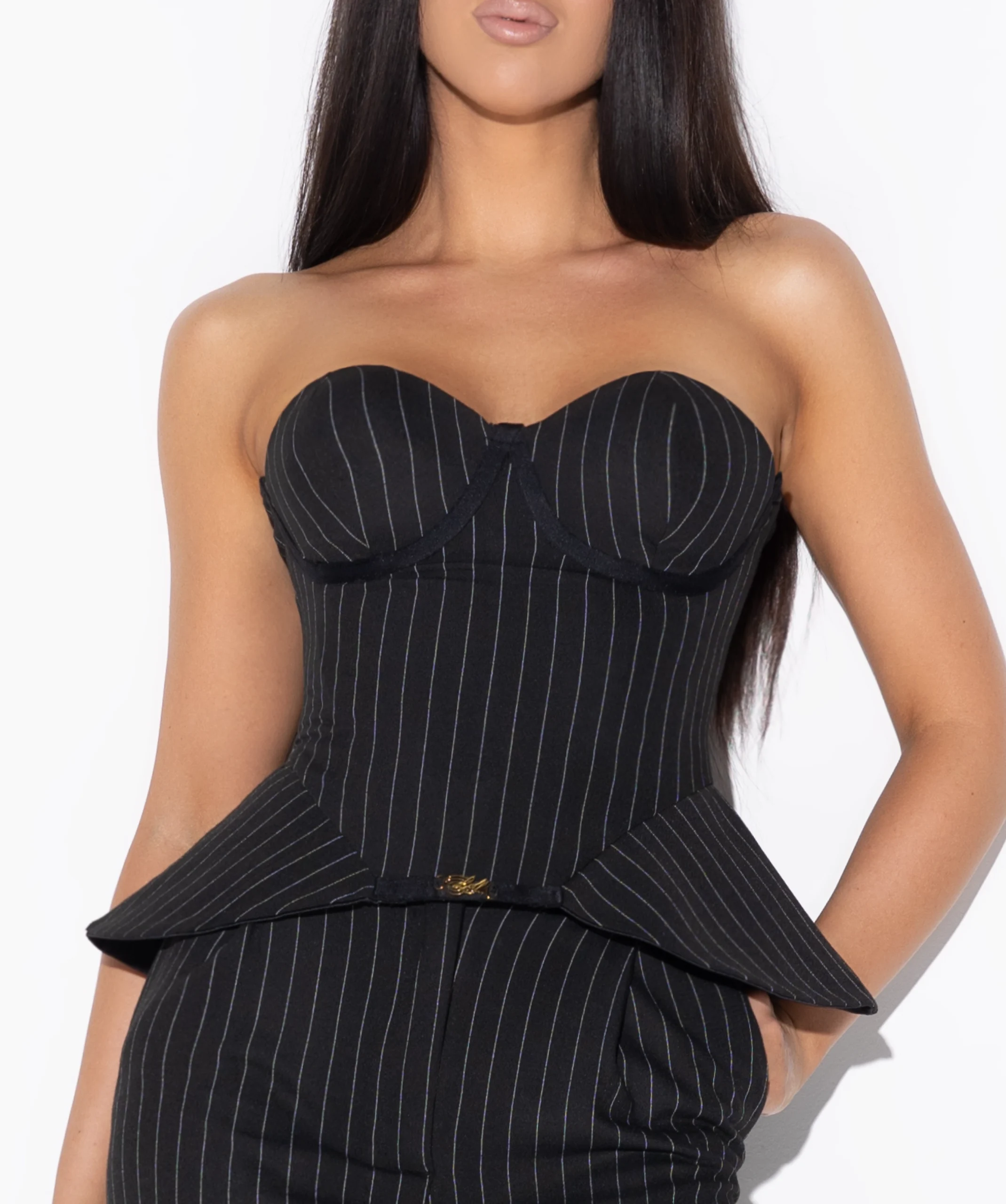 Komplet „Sophisticated Muse set“ Korset i pantalone u kompletu. Korset je na pertlanje pozadi i ima ojačanu strukturu koja definiše struk. Kombinacija klasičnih linija i modernog kroja čini ovaj komplet savršenim za formalne događaje, kao i za sve prilike gde je potrebna elegancija sa dozom moći, ovaj komplet je pravi izbor. Lako se kombinuju sa drugim odevnim komadima. Sastav materijala: mešavina poliestera, viskoze i elastina